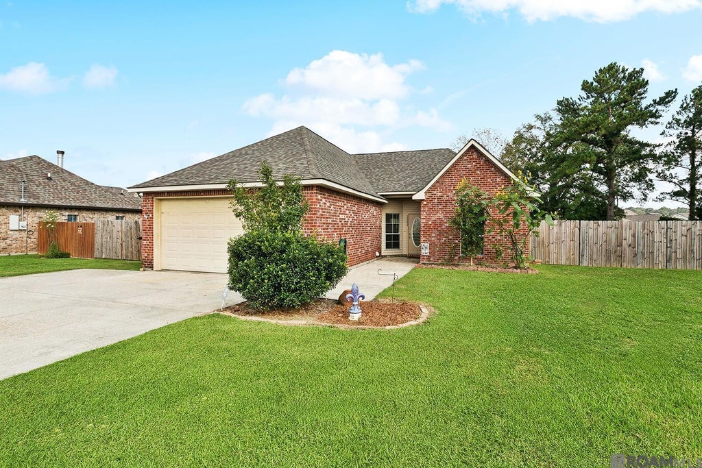 Welcome to this charming 3-bedroom, 2-bath home located in the desirable Ott Acres subdivision of Denham Springs. Step inside to find a spacious living room featuring beautiful laminate wood flooring, a cozy wood-burning fireplace, a tray ceiling, and a bright, inviting interior. The kitchen offers custom cabinetry with ample storage, an electric cooktop, tile countertops and backsplash, and a spacious dining area, ideal for family meals or entertaining friends. All bedrooms are generously sized with abundant closet storage. The master suite includes double vanities and a tub/shower combo for convenience and comfort. Enjoy outdoor living under the extended covered patio overlooking the large, fully fenced backyard. A storage shed is located on the side of the property, perfect for tools and equipment. This home has been meticulously maintained with major updates, including a new roof and hot water heater in 2024, and HVAC system upgrades with the inside unit replaced in 2020 and the outside unit in April 2025. Don’t miss the opportunity to own this move-in-ready home in a quiet, established neighborhood!