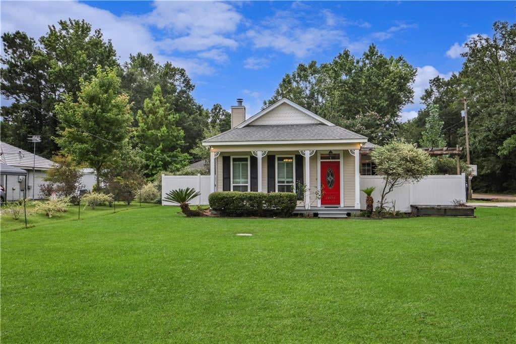 Welcome to 24638 Esquinance St, a charming home nestled on a spacious corner lot in MANDEVILLE SCHOOL district that perfectly blends comfort and style. This delightful residence features 3 bedrooms and 2 bathrooms, making it an ideal choice for first-time homebuyers or those looking to downsize. As you approach, you’ll be greeted by three inviting porches—front, side, and rear—offering numerous options for enjoying your morning coffee or relaxing in the evening breeze. The property is surrounded by a vinyl fence with double gates on the driveway side, ensuring both privacy and convenience. Step inside to discover real hardwood floors that flow through the living room, dining area, and hallway, adding warmth and character to the home. The adorable kitchen is a true highlight, featuring granite countertops, a small island for extra prep space, and a built-in desk, perfect for your work-from-home needs. This home is centrally located between Mandeville and Slidell, providing easy access to I-12 and the Causeway for a convenient commute. Enjoy the outdoors with nearby attractions including Pelican Park, Fontainebleau State Park, and Big Branch Marsh Wildlife Refuge, making this location a nature lover's paradise. Don’t miss out on this super cute home that perfectly balances charm, functionality, and location—schedule your showing today!